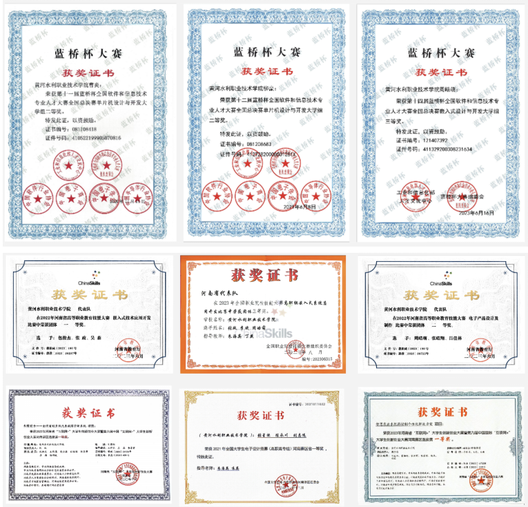 学生参加各类专业技能和创新创业大赛获奖证书