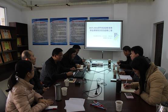 首先,樊建科书记、焦红强主任分别致欢迎辞,对国教院领导、老师深入系部调研表示欢迎;并介绍了旅游系目前专业建设情况以及表达出旅游系专业师生迫切渴望提高英语听说能力的心声。紧接着,国教院樊庆明老师针对个人的2016年校级教育教学改革立项课题进行了课件汇报,该课题名称为“高职公共外语服务型教学的实证研究---基于旅游类专业公共外语教学改革的探索”(项目编号:2015XJJGLX018),旨在研究在当前国际化、专业化的社会背景下,如何将专业融入公共英语教学(“英语+专业方向”), 并促使英语与专业相协调,对学生进行多素能融合式培养,从而形成“英语依托专业来生存,专业借助外语来发展”的共赢局面。该课题自今年3月份立项以来,课题组全体成员积极努力,以旅游系2016级新生为对象从教材使用、授课模式、作业方式等方面开展教学实验和研究,目前研究进展顺利;同时该课题还被列为2016年河南省教育科学“十三五”规划重点课题之一来进行开展。樊庆明老师的汇报结束后,两个部门领导对汇报表示满意,并对课题组成员在冰球官网公共英语教学改革中所进行的尝试和努力给予了充分肯定;此外,双方领导和专业教师还针对公共英语教学改革的侧重点、分层教学、授课模式、考评体系以及公共英语与专业英语课程衔接等一系列问题进行了深入的沟通和交流。
