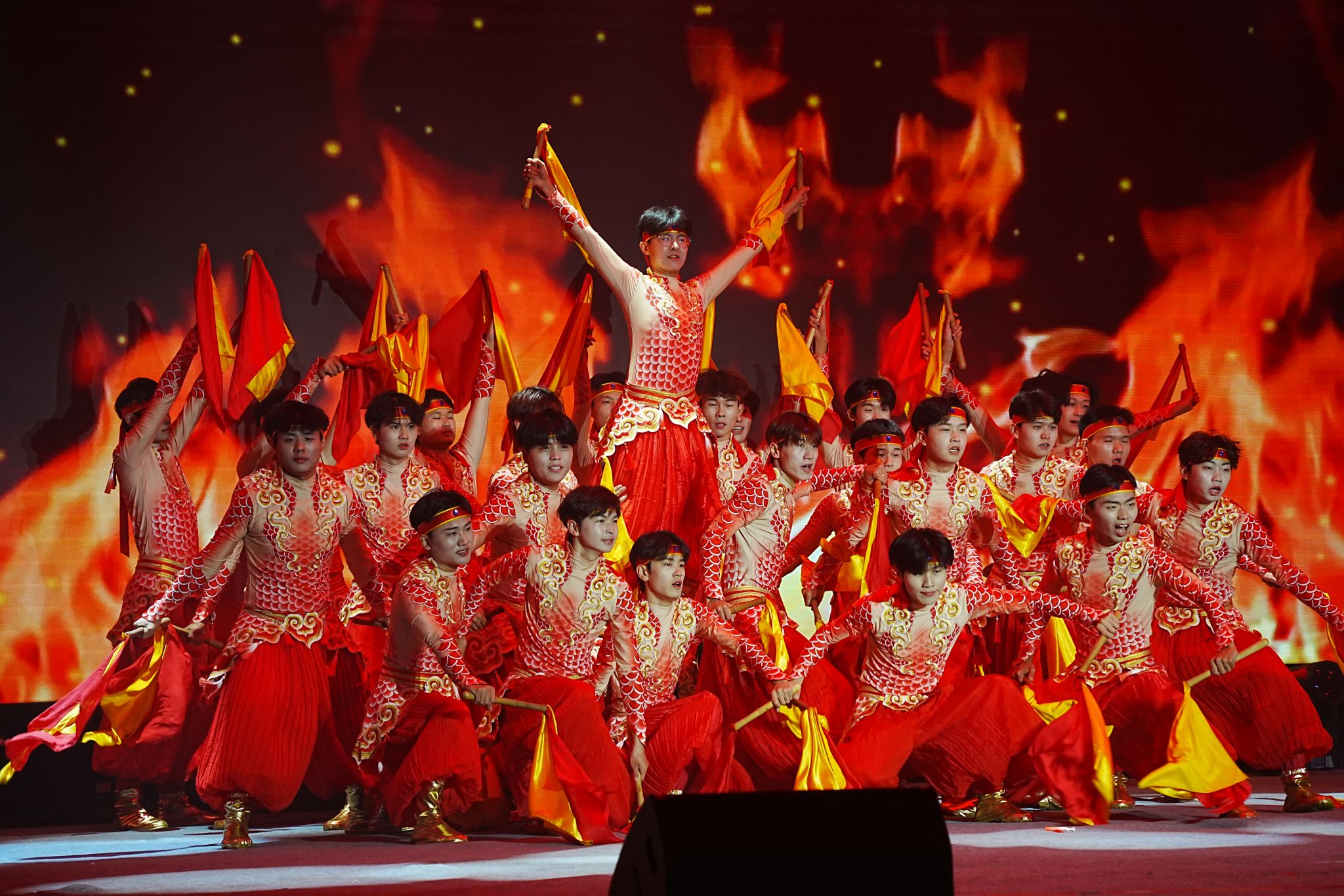 在第二篇章“绽放芳华”中,开封传统非遗舞蹈《黄河鼓阵》舞出了黄河水院学子英姿勃勃、霸气豪迈的气概,令人震撼,催人奋进;相声《话说开封》用诙谐幽默的语言讲述具有两千多年建城史的古都开封的深厚底蕴;街舞《Feel my soul》每一个动作都充满了力量与激情,动感的舞姿,展现着青春的魅力;青春的脚步在舞台上跃动,时尚的脉搏在这里跳动,礼仪队的同学们用自信的姿态献上了一场T台秀《焕·星》。