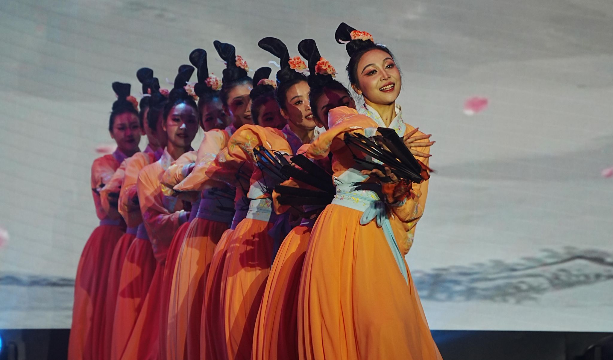 在第一篇章“筑梦水院”中,歌伴舞《临江仙·黄河水院吟》描绘了水院学予以黄河保护与治理为己任,为黄河70余载岁岁安澜和人民治黄事业做贡献的情境;开封非遗拍板舞《汴水檀声》古色古香、宋风浓郁,仿佛一幅古画鲜活了起来;一颗初心,镌刻赓续传承的百年荣光,一种信仰,汇聚日月新天的磅礴力量,高歌一曲《万疆》,勾勒山河无恙的盛世景象。