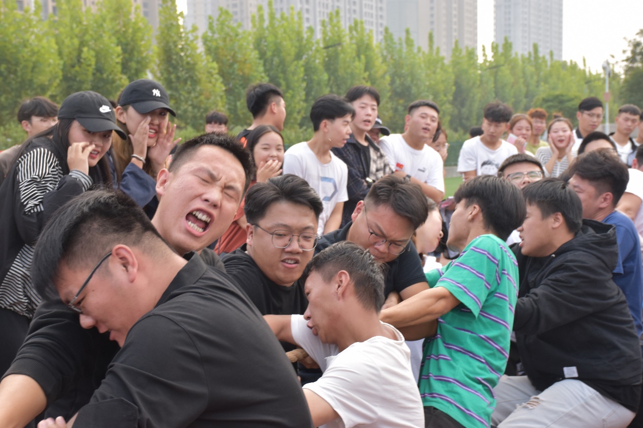 10月1日上午,我院所有在校学生及班主任到祥云体育场集合,以班级为单位参加拔河比赛。本次拔河比赛由李忠旺老师担任主裁判。根据前期的抽签结果,各班同学有序进入场地参加比赛。随着主裁哨声的响起,参赛的同学紧咬牙关,使劲将绳子往后拉,为班级荣誉拼尽全力。啦啦队同学喊着整齐的口号为班级同学呐喊助威,以期为班级取得比赛胜利贡献自己的绵薄之力。一时间,整个祥云体育场的节日氛围达到了高潮。