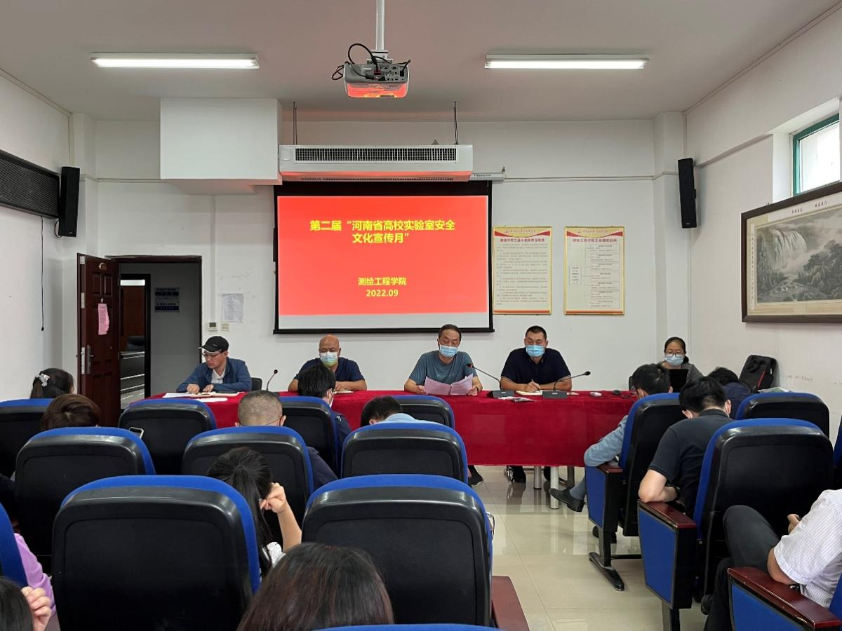 9月27日,测绘工程学院在院会议室召开“河南省高校实验室安全文化宣传月”专题会议,全体教师参会,会议由副院长张丹主持。党总支书记纪勇传达了实验室安全文件的相关精神的内容,会上布置安排了实训室安全宣传、安全教育培训、安全检查,以及知识竞赛等相关活动,鼓励全院师生积极参与,提高实训室安全意识。