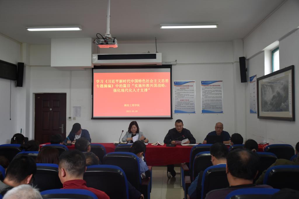 5月9日下午,测绘工程学院党总支组织学习了政治理论专题学习会,会议主题为《习近平新时代中国特色社会主义思想专题摘编》中的篇目“实施科教兴国战略,强化现代化人才支撑”,院全体教职工参加会议。会议由学院党总支副书记彭战松主持。