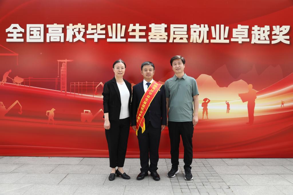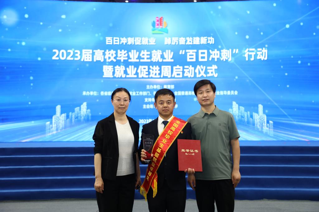 启动仪式上,教育部会同中国长江三峡集团为首批“全国高校毕业生基层就业卓越奖”获奖师生代表颁奖,张卫东代表河南高校获奖师生登台领奖。