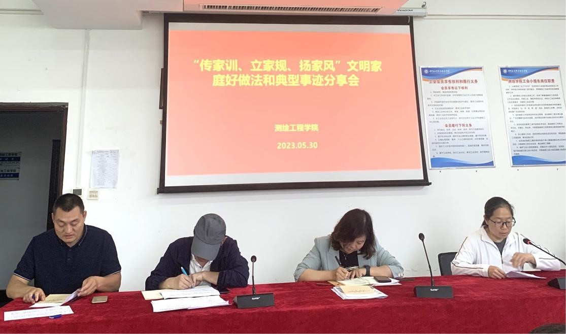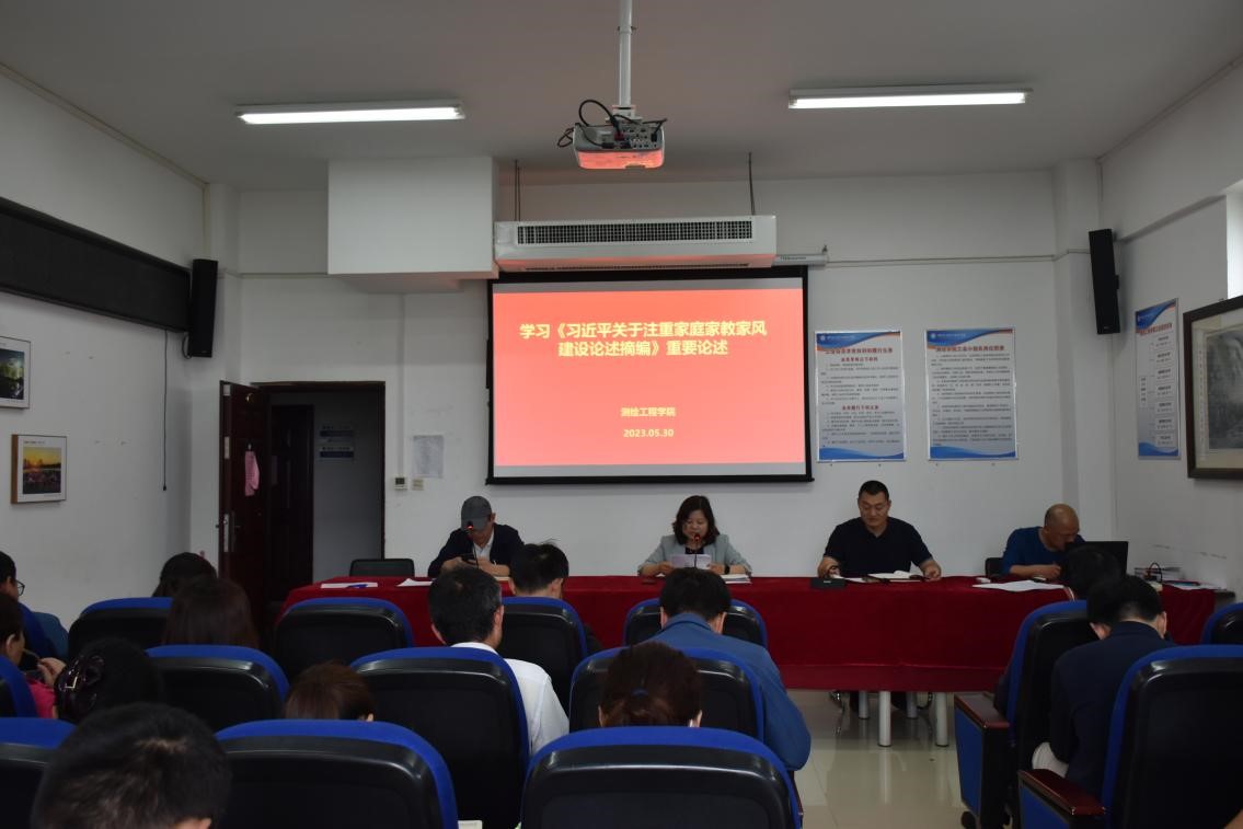 为学习贯彻习近平新时代中国特色社会主义思想主题教育,测绘工程学院分工会在5月30日组织全体教职工学习了《习近平关于注重家庭家教家风建设论述摘编》等重要论述。会议由分工会主席彭战松主持。