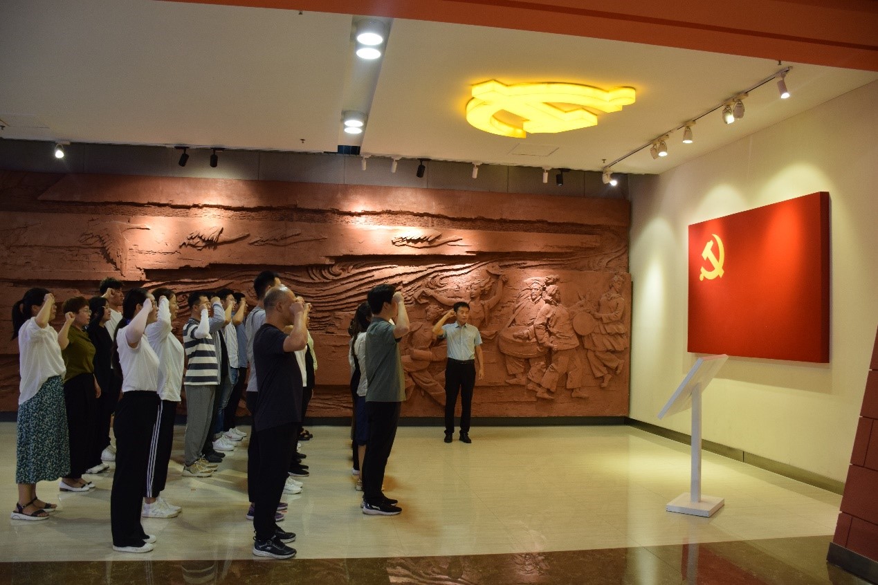 在焦裕禄纪念馆,同志们重温入党誓词。纪念馆内,每一件饱经风霜的遗物,每一幅栩栩如生的图片,每一个亲切感人的事迹,都真实反映了焦裕禄同志的奉献精神和公仆情怀。大家仔细聆听讲解员的生动讲解,时而驻足观看,时而凝神思索,亲身体会感天动地的焦裕禄精神。
