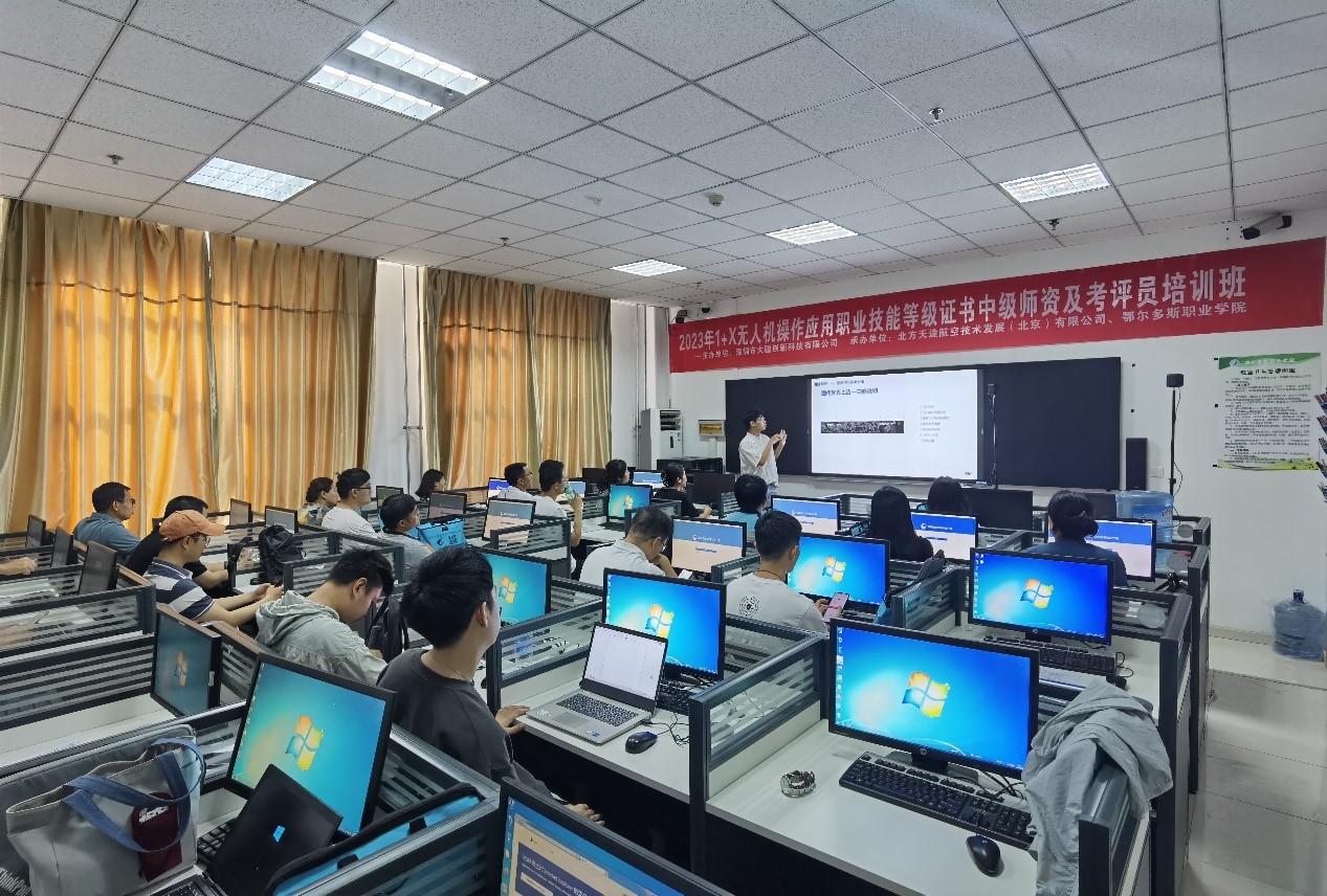 8月5日至10日,测绘工程学院摄影测量教研室主任齐建伟、地理信息教研室主任李建辉等9名教师参加了由深圳市大疆创新科技有限公司在鄂尔多斯职业学院所举办的“1+X无人机操作应用职业技能等级证书中级师资及考评员培训”。此次培训中,三十多名无人机专业教师通过理论与实践相结合的技能培训方式,拥有了扎实的理论基础和专业知识,熟练掌握了无人机操作应用能力,有效提升了自身的专业实践能力。同时,为增强育人本领,构建课程体系,推动各院校无人机操作应用职业技能等级证书培训工作夯实了坚定基础。