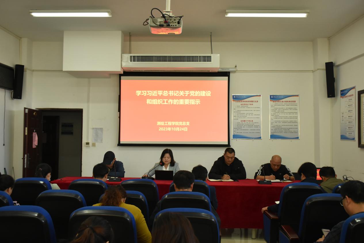 10月24日,测绘工程学院党总支在学院SY5434会议室召开专题理论学习会议,深入学习贯彻全国组织工作会议精神。全院教职工参加会议,会议由党总支书记高琼主持。