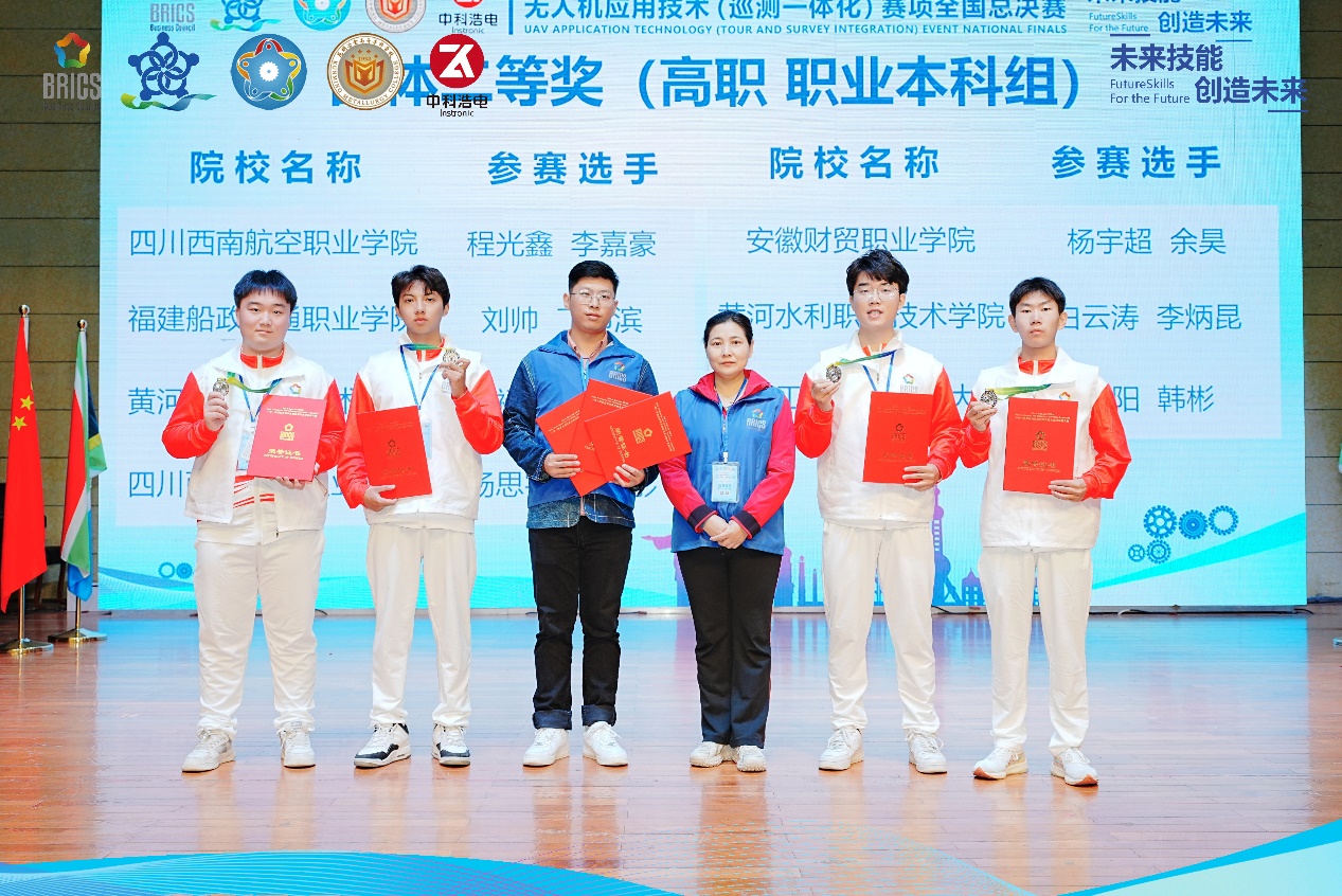 10月19日至23日,第七届一带一路暨金砖国家技能发展与技术创新大赛——无人机应用技术(巡测一体化)赛项竞赛决赛在云南省安宁市昆明冶金高等专科学校举办。经过激烈角逐,由冰球官网测绘工程学院何宽作为领队,张辉、崔耀辉作为指导教师,学生白云涛、李炳昆组成的1队,由齐建伟作为领队,教师张辉、崔耀辉作为指导教师,学生王禄宪、吴沛轩组成的2队均荣获二等奖;MG冰球突破官网网站获得 “优秀组织奖”,两位指导教师获得“优秀指导教师”荣誉称号。