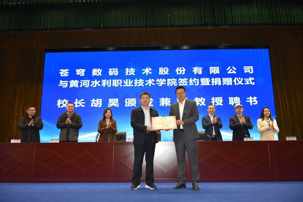 刘旭代表公司向冰球官网捐赠了平台,胡昊为刘旭颁发了兼职教授聘任证书。