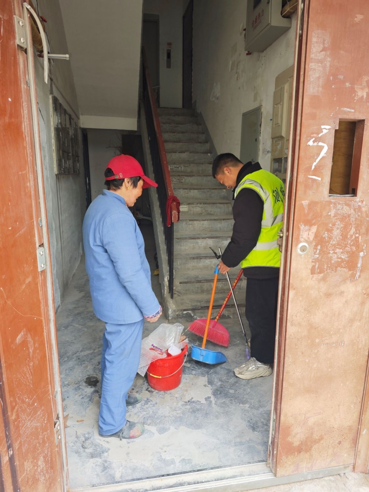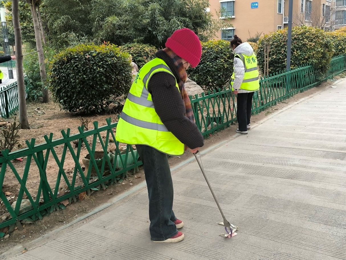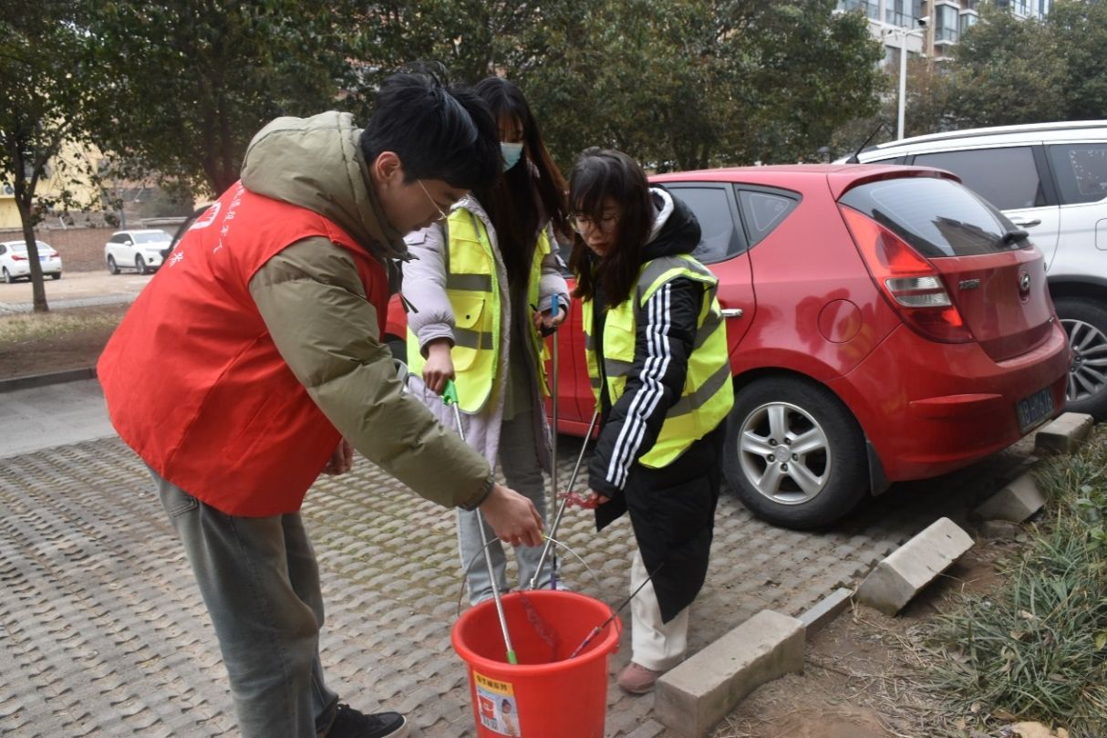 张继坤和陶四凤组织学生和社区工作人员走进里仁居社区进行志愿服务,志愿者们对垃圾进行分类处理,相互配合清理社区公共活动区域。还将停放杂乱的单车重新排序,整齐排列,排除道路上的安全隐患,以确保社区居民可以安全出行。