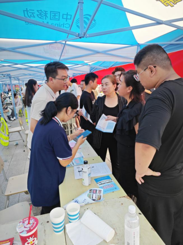 宣传现场,资助老师和学生资助助理为新生和家长发放资助宣传手册,详细回答家长有关奖助学金、贷款等相关问题。