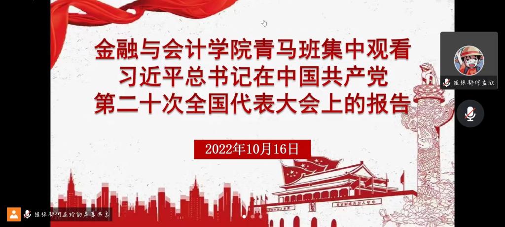 10月16日上午10时,中国共产党第二十次全国代表大会在北京人民大会堂隆重开幕,习近平代表第十九届中央委员会向大会作报告。金融与会计学院党总支组织青马班学员在SY5412会议室集中观看开幕会盛况,认真学习领会习近平总书记在党的二十大所作的报告。