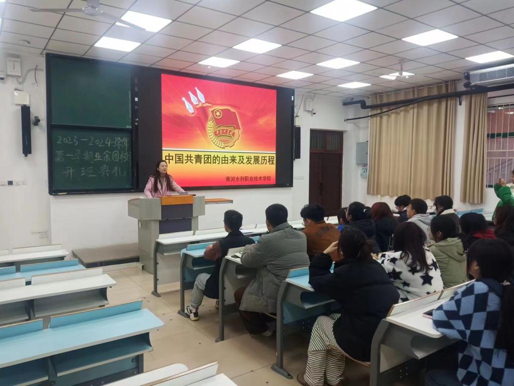 2023年11月28日中午,金融与会计学院分团委在JX6101教室召开举团情团史教育专题团课, 2023-2024学年第一学期业余团校学员、“青马工程”学员、团干部、学生干部代表团课学习。团课由院分团委书记马峥主讲。