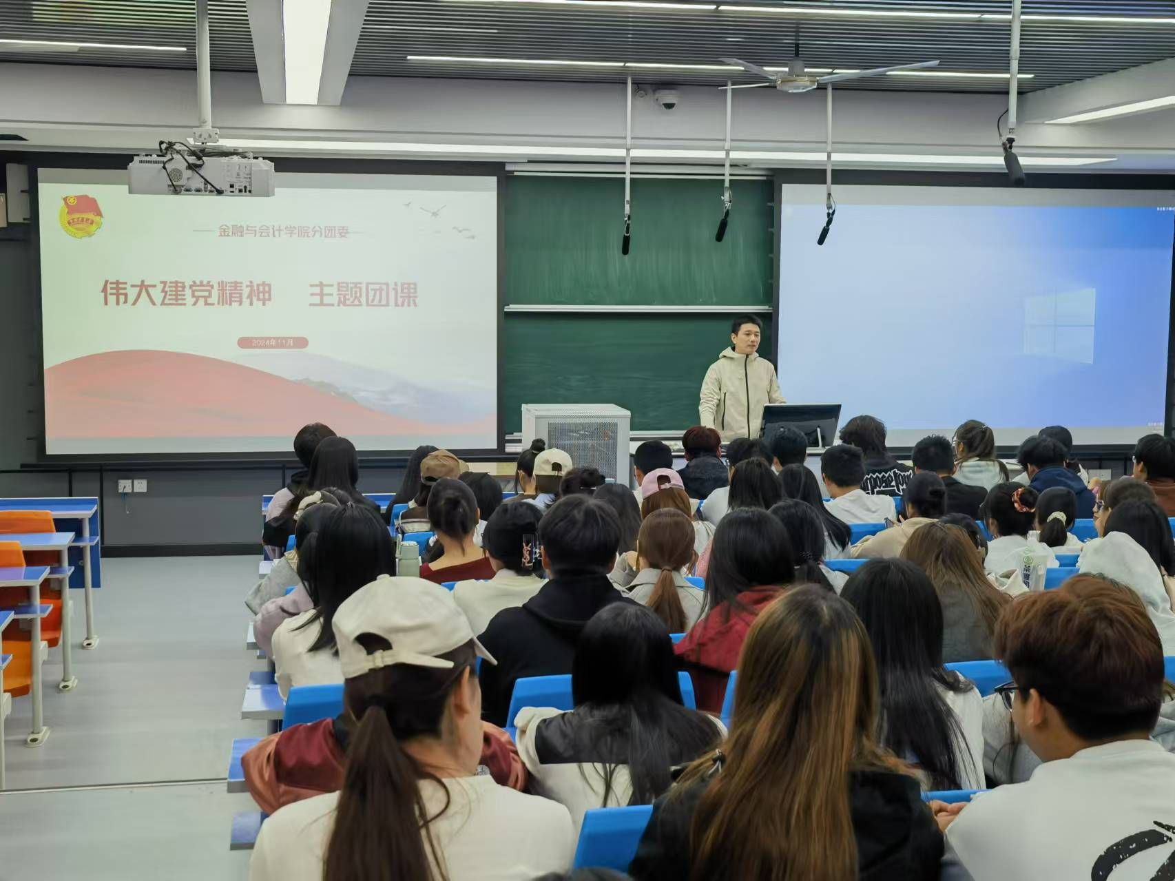 2024年11月1日,金融会计学院分团委在JX2302教室召开党史学习教育专题团课暨“青马工程”培训, 2024-2025学年第一学期业余团校学员、“青马工程”学员参加。本次课程由辅导员朱命龙老师主讲。
