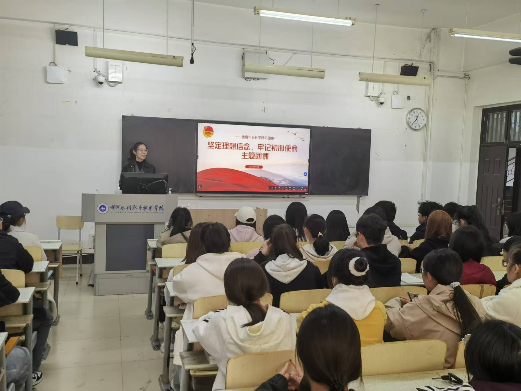 11月8日下午,金融与会计学院分团委在JX2302教室开展理想信念教育专题团课暨“青马工程”培训,2024-2025学年第一学期业余团校学员、“青马工程”学员参加。团课由分团委教师李金月主讲。
