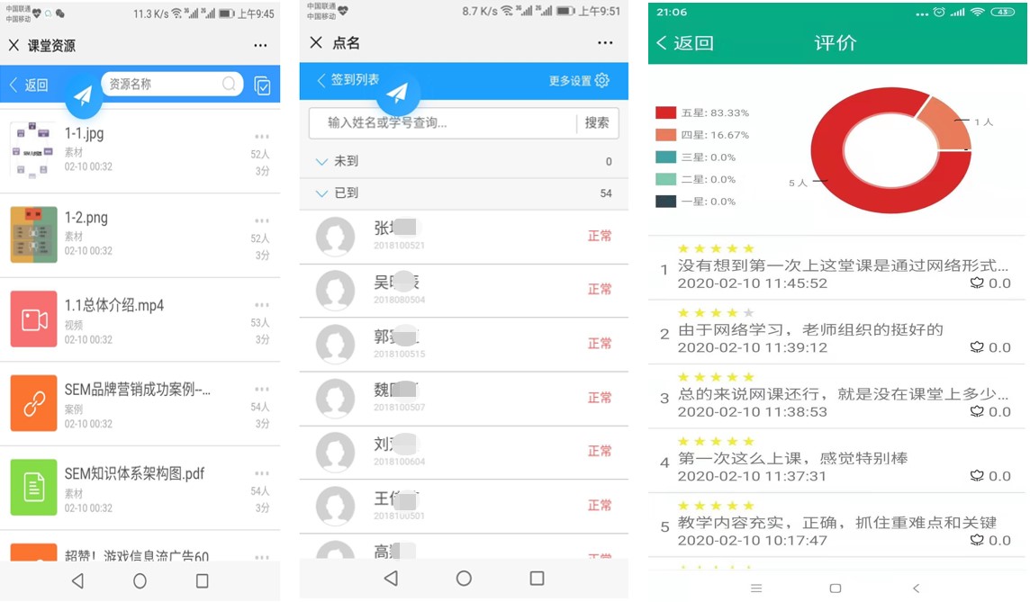 与此同时,学校通过网络做好课程质量监控与指导,教育教学督导室通过教学平台管理系统检查教学任务的落实,督导教学运行。教师线上教学的课时数计入总学时数,并认定相应工作量;线上教学成绩计入学生课程学习成绩。