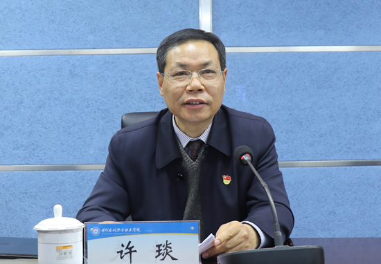 许琰同志做离任表态发言。他表示省委的任免决定充分体现了省委对学校的亲切关怀和学校事业发展的充分肯定,自己坚决拥护,服从组织安排,并向周保平同志表示诚挚祝贺和良好祝愿。他深情地回顾了在黄河水院的工作历程和工作体会,在任期间带领班子成员与全体教职员工,团结奋进,开拓进取,积极破解了制约学校发展的瓶颈问题;构建了“十个抓”党建工程,夯实基层基础,激发党建活力,以高质量党建推动了学校各项事业高质量发展;形成了“以工为基,以水为特,一体两翼,特色发展”的专业定位和“黄河为魂,水利为根,工程为基,育人为本”的办学理念,办学实力不断增强;打造了一流的人才培养水平、一流的科研与技术服务能力、一流的国际化水平、一流的创新创业能力“四张名片”,学校社会声誉显著提升。他希望同志们一如既往、全力以赴地支持新一届校党委的工作。他深信,在新一届校党委的带领下,黄河水院师生一定能抓住机遇、昂首阔步,把黄河水院建成“引领改革、支撑发展、中国特色、世界水平”的高职学校。