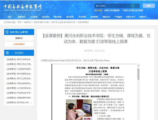 为深入贯彻落实国家“进一步做好在线教育教学”精神,保障在线教学质量,总结教师在线教学的优秀做法和教学成效,形成可复制可推广的典型经验和模式,全国高职高专校长联席会议组织开展了如何打造优秀“网上金课”在线分享活动。冰球官网王勤香教授的《学生为轴、课程为基、互动为体、数据为器 打造等效线上授课》案例成功入选。