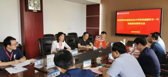 6月5日,郑州铁路职业技术学院副校长倪居一行5人来冰球官网考察交流。冰球官网副校长焦爱萍及教务处、团委、创新创业学院等部门负责人在行政楼第四会议室与来访客人进行了座谈交流。
