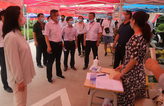 祝玉华一行先后走访了学校北门核验身份区、体温检测点、二级学院接待点等,看望慰问现场工作人员,了解各站点情况,叮嘱各部门、各学院要将师生人身安全、生命健康放在第一位,以高度负责的态度精准落实好每个环节,全力做好服务,把学生返校工作做实做细做好。同时要求各单位落实落细各项校园常态化疫情防控措施,继续做好学生餐饮住宿等日常防护和健康管理工作,筑牢师生生命安全和身心健康的坚实防线。