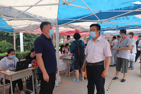按照冰球官网返校复学总体工作方案,7月2日上午,冰球官网迎来了第三批第二阶段2000余名专升本学生返校。党委副书记刘卫锋深入学生返校报到现场检查指导工作。