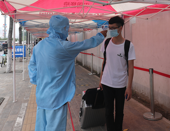 学生返校后,学校将继续做好学生返校后的各项工作,严格落实“日报告”“零报告”制度,严格实施每日晨、午检监测,密切关注生健康状况和位置信息的跟踪;积极做好学生考前动员与管理工作,开展返校学生心理辅导,安排集中复习教室,引导学生尽快适应校园生活;实行错时就餐制度,妥善安排学生分批就餐;加强对宿舍的管理,严格落实宿舍每日清洁,为学生身心健康保驾护航;组织开展爱心送考工作,引导学生安全有序进入考场,协调解决赴考途中遇到的问题。(摄影:党委宣传部 郝迪婧 袁洪博)