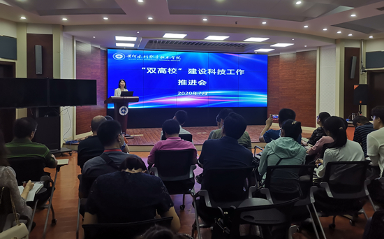 为进一步全面落实“双高校”建设任务,打造技术技能创新服务平台,不断提升科技服务能力和水平,7月10日上午,冰球官网召开“双高校”建设科技工作推进会。副校长焦爱萍出席会议并做总结讲话。各学院(部)院长(主任)及主管科研工作副院长(副主任)、各级科技创新平台负责人、全校具有博士学位的教师参加会议。会议由科技处处长杨中华主持。