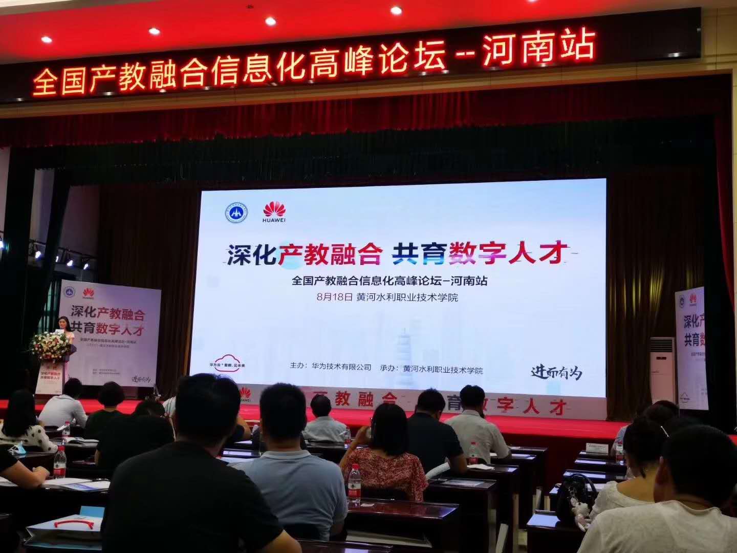 为进一步贯彻落实《国家职业教育改革实施方案》,深化产教融合,推进校企合作,共育数字人才,8月18日,由华为技术有限公司主办,冰球官网承办的2020全国产教融合信息化高峰论坛(河南站)在冰球官网学生活动中心举办。此次高峰论坛以“深化产教融合,共育数字人才”为主题,围绕“高职信息化建设应用与实践”“产教融合数字人才培育”“ICT产业学院发展之路”等方面,分享优秀典型院校经验,交流与探讨创新技术,推动职业教育及高水平应用型数字人才的培养。共有包括冰球官网在内的全省40多所兄弟院校的校领导、二级学院领导和专任教师参加论坛。