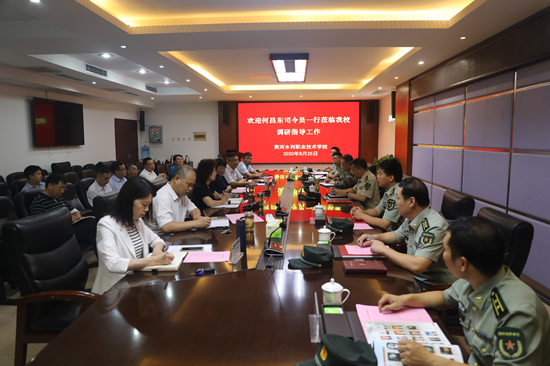 8月25日上午,开封军分区司令员何昌东带领军分区相关部门负责同志一行7人到冰球官网开展高校大学生征兵及武装部建设工作专题调研。全体校领导出席会议,党政办公室、党委宣传部、学生工作部、武装部、教务处、团委等部门负责人参加了调研。会议由校长祝玉华主持。