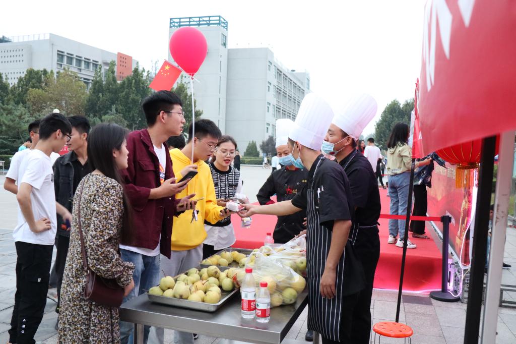 为了使学子们在学校度过一个祥和欢快的双节,10月1日,后勤管理服务中心举办“红豆寄相思 秋梨别疫情”纪念中华人民共和国成立71周年特别活动。活动将“尊重劳动,杜绝舌尖上的浪费”“节约粮食,积极开展光盘行动”“欢度佳节,弘扬中国传统文化”“庆祝国庆,激发伟大爱国热情”四个主题紧密结合起来,为学子们准备了一场热闹喜庆又有意义的“家国情怀”盛宴。