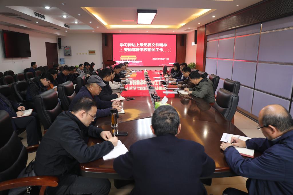 11月11日上午,党委副书记刘卫锋在行政楼第一会议室主持召开分管部门和联系单位中层干部会议,专题学习《河南省纪检监察机关严肃查处诬告陷害行为澄清保护党员干部暂行办法》。党委组织部、党委宣传部、纪委、学生工作部、保卫部、离退休党总支、团委、电气工程学院、商务与管理学院、环境工程学院、马克思主义学院等部门、单位中层干部参加学习。