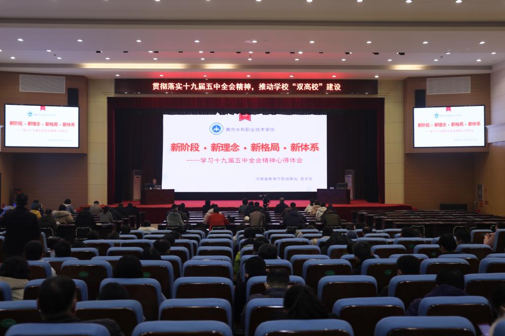 12月28日下午,河南省教育厅职业教育与成人教育处副处长史文生到冰球官网宣讲十九届五中全会精神。报告会在大学生活动中心报告厅举行,全体科级以上干部聆听了报告,报告会由校党委书记周保平主持。
