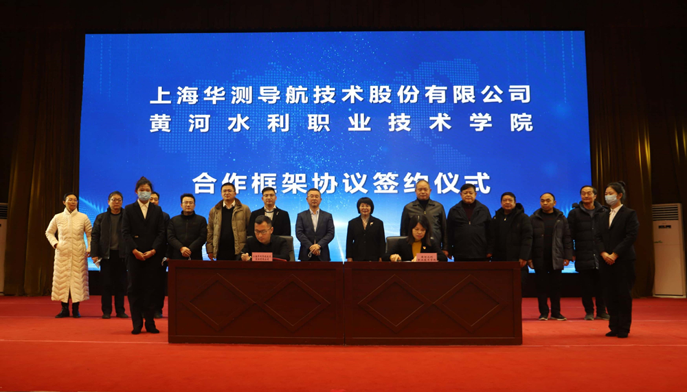 上海华测导航技术股份有限公司副总裁赵利平、副校长焦爱萍代表双方签订合作框架协议