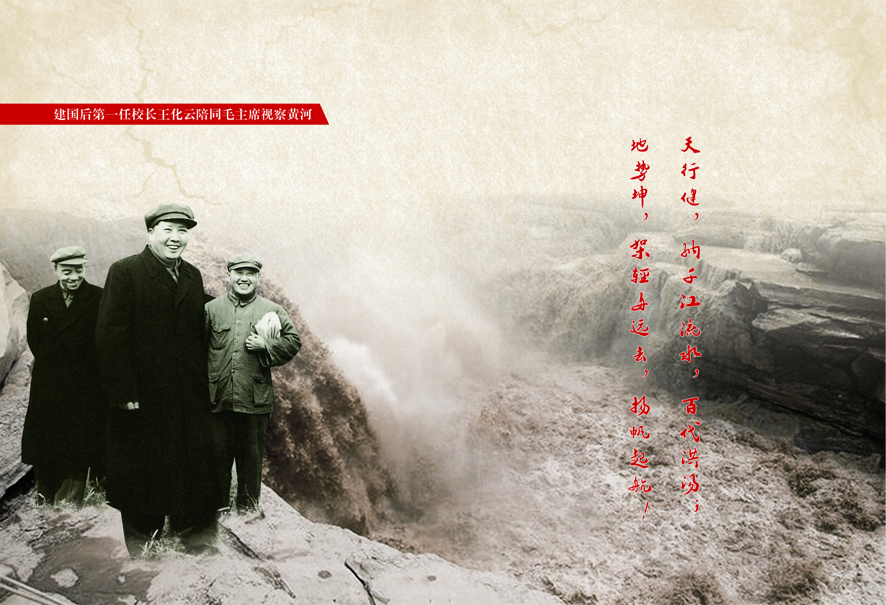 1950年,为给人民治黄事业培养急需的技术人才,时任黄河水利委员会主任王化云组织重建黄河水利专科学校,并担任新中国成立后的首任校长。1952年,王化云校长陪同毛主席视察黄河,毛主席嘱咐:你们要把黄河的事情办好。1953年-1955年,毛主席又三次接见王化云校长,听取关于治理黄河情况的汇报。