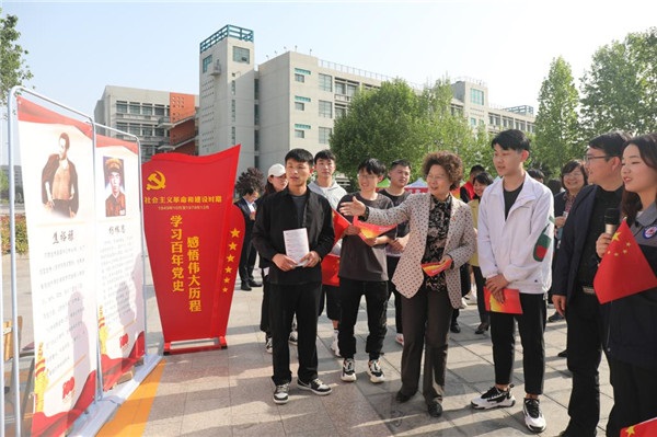 活动期间,党委书记周保平来到活动现场,与学子们亲切互动,并强调了学习党史的重要意义,要求青年学生传承红色基因,延续共产党人的精神血脉,从党史中汲取前进的智慧,感悟初心,强化担当,鼓起新时代的精气神,成为德智体美劳全面发展的高素质技术技能人才、社会主义合格建设者和可靠接班人,为实现“第二个百年奋斗目标”贡献自己的青春力量,让青春在党和人民最需要的地方绽放。