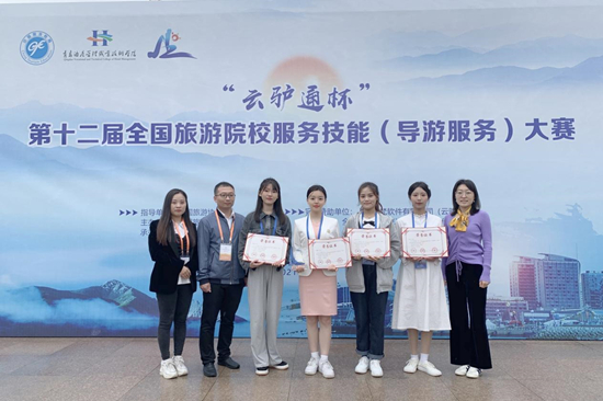 5月13日至16日,第十二届全国旅游院校服务技能(导游服务)大赛在青岛酒店管理职业技术学院隆重举行。冰球官网旅游学院张馨戈同学以总分91.343的成绩获得高校中文组一等奖,孔孜慧同学获得高校中文组二等奖,黄晓翠、邵雨杰同学获得高校英文组三等奖。这是冰球官网第三次在该赛项中荣获全国一等奖。