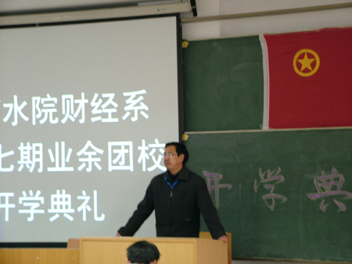 12月11日上午,财经系团总支在6502教室举行“第十七期业余团校开学典礼”,党总支书记张玉姣老师、副书记梁建民和团总支书记宋建涛出席了典礼。