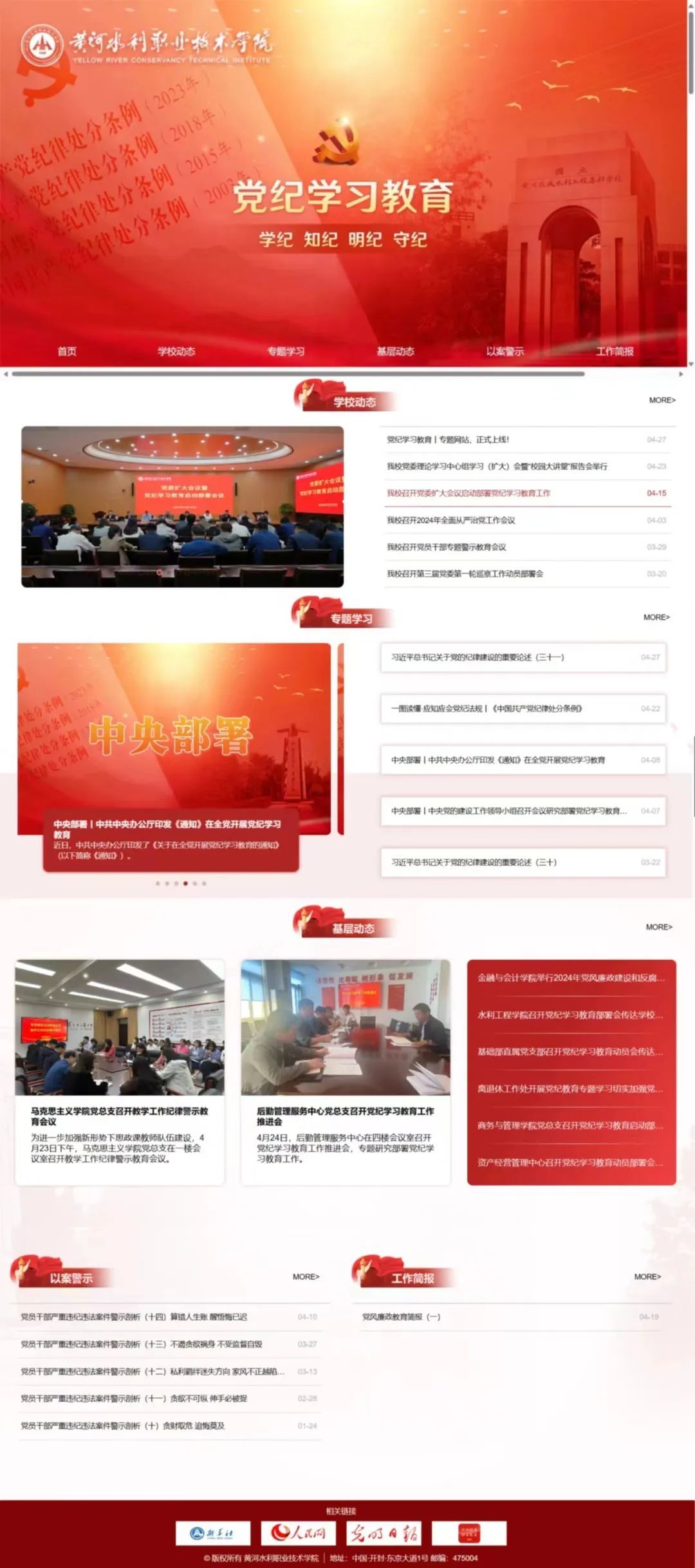 为了高标准高质量推进党纪学习教育深入开展,专题网站共设置“学校动态”“专题学习”“基层动态”“以案警示”和“工作简报”五大板块,将提供丰富的党纪学习教育资料,充分展示学校党纪学习教育的的进展成效,为促进广大党员干部学纪、知纪、明纪、守纪营造良好的学习氛围。