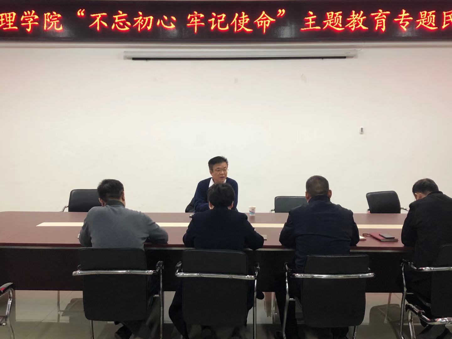 会前,教工商务管理支部组织全体党员学习了《习近平关于“不忘初心、牢记使命”的重要论述选编》《习近平关于《“不忘初心、牢记使命”论述摘编》等文件,以“不忘初心、牢记使命”为主题开展了广泛深入的“谈心谈话”活动,支委会开展了深入的互谈总结,梳理了2019年度党建工作中的成绩和不足。学院领导班子成员间开展了相互谈心谈话,就“不忘初心、牢记使命”主题教育开展情况和部门年度工作进行了深入交流。