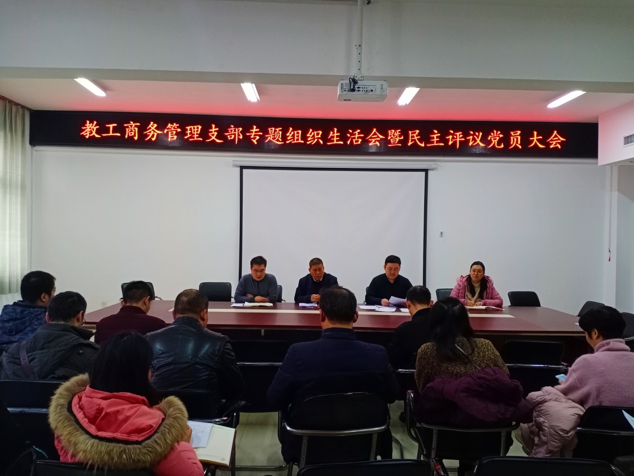 12月6日下午,商务与管理学院在SY5420党员活动室先后召开教工党支部专题组织生活会暨民主评议党员大会和领导班子专题民主生活会。教工商务管理支部组织生活会暨民主评议党员大会由学院党总支副书记邹新忠主持,校党委副书记刘卫锋以普通党员身份莅临会议,教工商务管理支部全体党员参加。