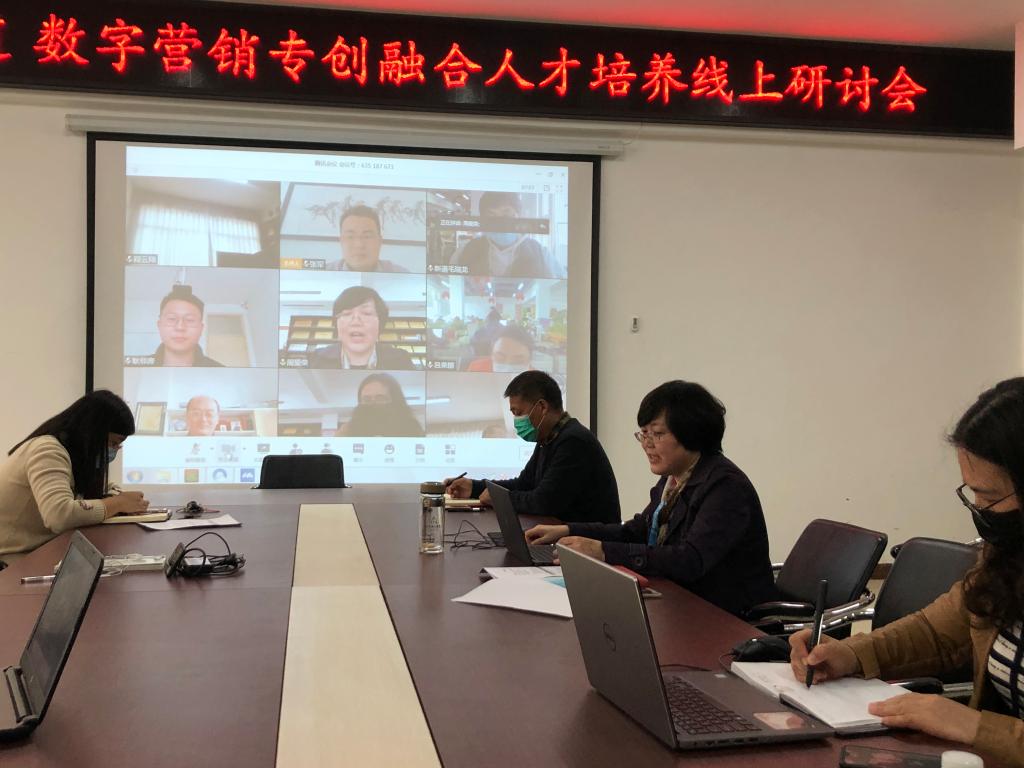 为了更好地开展专业及专业群建设定位,助力电商专业群“双高”建设, 4月7日下午,商务与管理学院组织学院科级和教研室主任及以上人员现场集中参会,专业群全体教师在线参会。首先,周院长致辞,向专家们总体介绍了冰球官网双高校建设情况,以及电子商务专业群和创新创业建设规划。然后,新道高级副总裁宋健做了“专创融合与赛教一体的双创教育”主题讲座。接下来,由数字营销高级专家陈曦和吕荣丽针对企业数智营销转型趋势,结合冰球官网市场营销专业当前人才培养方案进行剖析诊断,为市场营销专业向数智化营销转型提出宝贵建议,并为教学团队对数智化营销对应岗位及能力进行深入分析。随后,我院专业群教师根据在建设中遇到的各类情况从多个维度提出了一系列有针对性的问题,新道在线专家一一解答教师提出的诸如关于创新创业和市场营销数智化转型中人才培养定位、课程体系改革和实训教学设计等方面的问题。