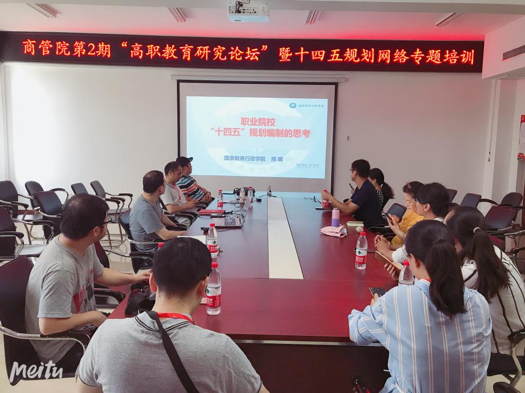 2020年7月25日至26日,商务与管理学院在实训楼SY5420会议室组织全体教师参加了2020年第2期“高职教育研究论坛”暨十四五规划网络专题培训班,培训班以网络直播视频形式进行。