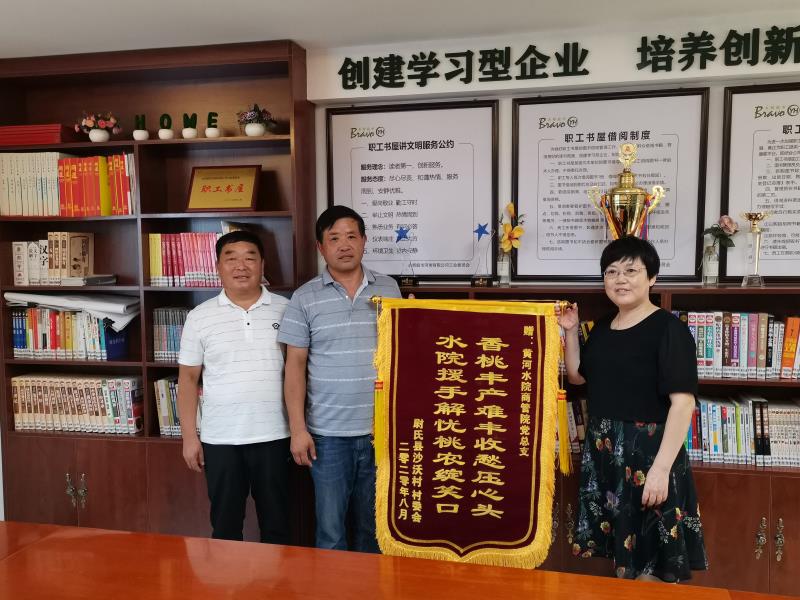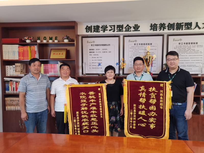 2020年6月期间,商务与管理学院帮助尉氏沙沃村联系永辉超市,累计销售桃子30余万斤。8月18日,沙沃村为表示感谢,专程赴位于郑州市的永辉超市第七战区总部,向MG冰球突破官网网站和永辉超市赠送锦旗,感谢两者所做的扶贫工作。商务与管理学院院长周爱荣带队,市场营销教研室主任程云翔等参与此次活动,针对校企合作进行深入探讨。永辉超市第七战区人资总监骆鑫、生鲜营运负责人柳学刚等出席活动。