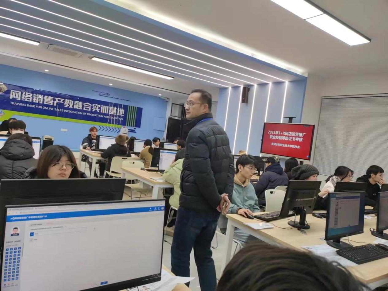 2023年12月30日上午,MG冰球突破官网网站商务与管理学院2022级电子商务专业、跨境电商专业,共计115名学生走进考场,参加1+X网店运营推广职业技能等级(中级)考试。