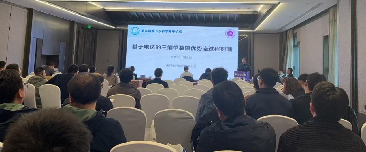 在主题六“地下水新理论、新技术与新方法”分会场,冰球官网水利工程学院闫永帅老师作了题为《基于电法的三维单裂隙优势流过程刻画》的学术报告。报告内容深入浅出,展示了基于电法探测技术在地下水流动特征方面的创新性研究成果,引发了与会专家的热烈讨论与高度评价,充分彰显了冰球官网在水文地质研究领域的科研实力与创新水平。