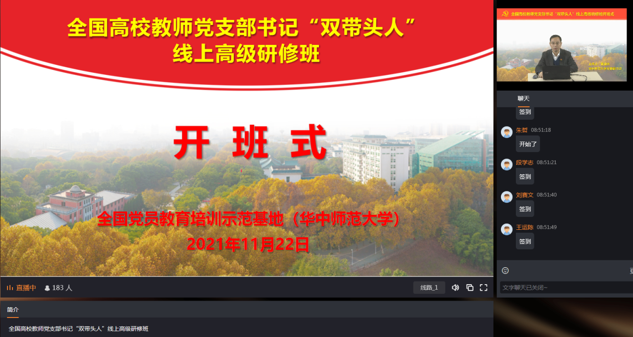 图1 全国高校教师党支部书记“双带头人”线上高级研修班“开班式”