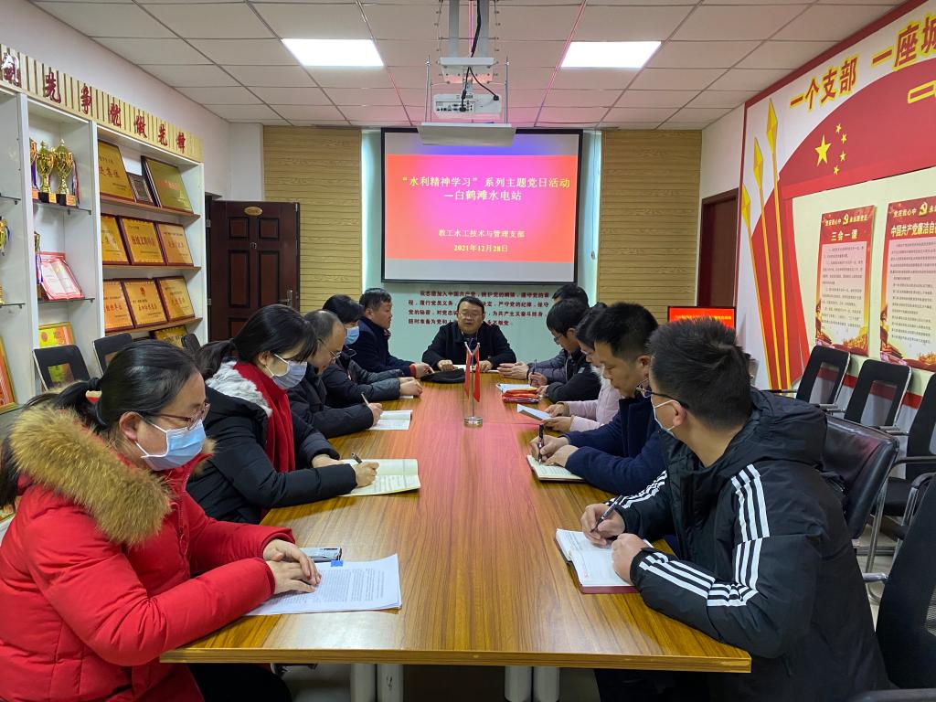 12月28日下午,水利工程学院党总支教工水工技术与管理支部全体党员在会议室SY5310召开了“水利精神学习”系列之“白鹤滩水电站”主题党日活动,由支部书记王建伟同志主持,支部全体党员参加了本次学习活动。