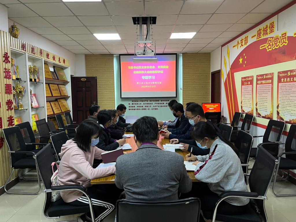 4月12日下午,水利工程学院党总支教工水工技术与管理支部全体党员,在会议室SY5306对习近平总书记在北京冬奥会、冬残奥会总结表彰大会的重要讲话开展了专题学习,由支部书记王建伟同志主持,支部全体党员参加了本次专题学习。