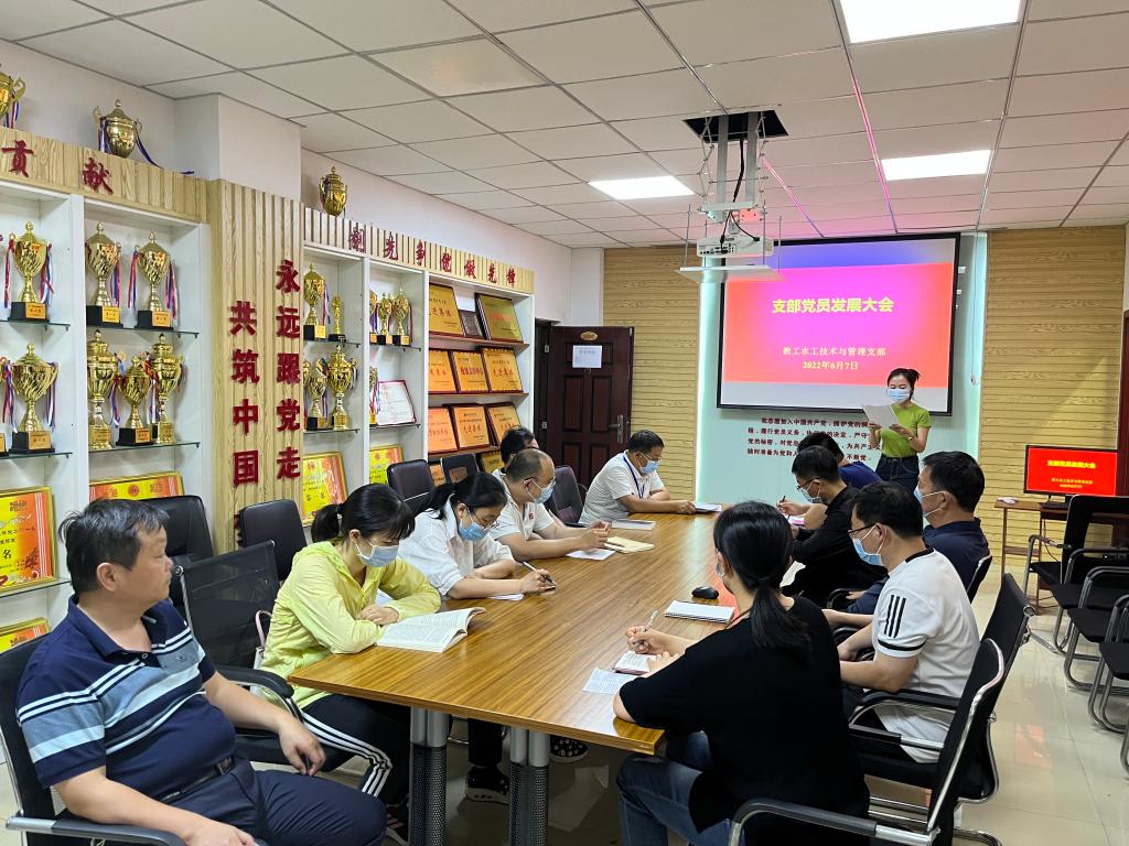 6月7日下午,教工水工技术与管理支部在实训楼5306召开党员发展大会。会议由支部书记王建伟同志主持,支部全体党员及发展对象孟苗苗老师参会。